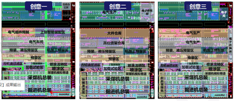 前期布局整体规划过程中,共提供3种布局创意,通过多次沟通调整,确定出一版最适合创力发展的方案。