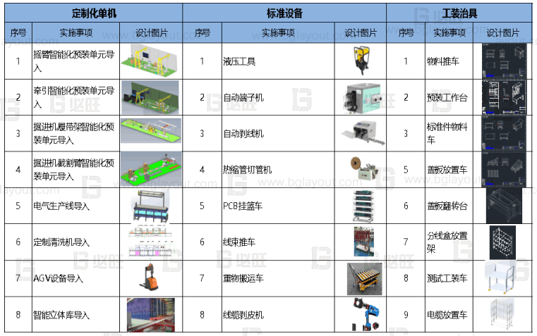 本规划项目涉及对工厂进行整体规划,创建模范工厂,规划内容包含对车间精益布局规划、生产线体自动化设计、车间物流规划、智能化电子仓库规划等服务内容,实现工厂数据规范化、标准化,可满足未来公司高速扩张的生产需求。