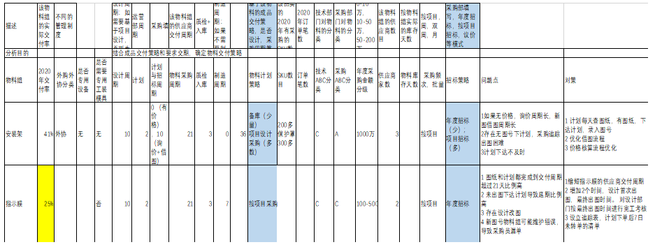 对bom进行分析,完成产品-零件矩阵,给每个零件制订交付策略,供应商的核心部件进行标准化设计,并要求供应商储备