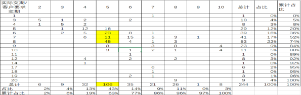 (4)对三年的数据进行分析,合同交期是最多的是5个月交期,实际执行交期是6-8个月。