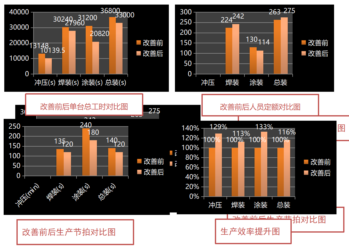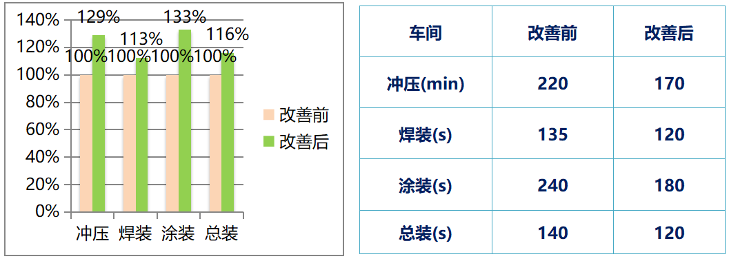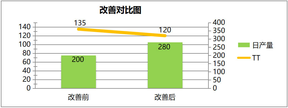 总装产能提升后标准时间(tt)为120s,生产效率提升16.6%